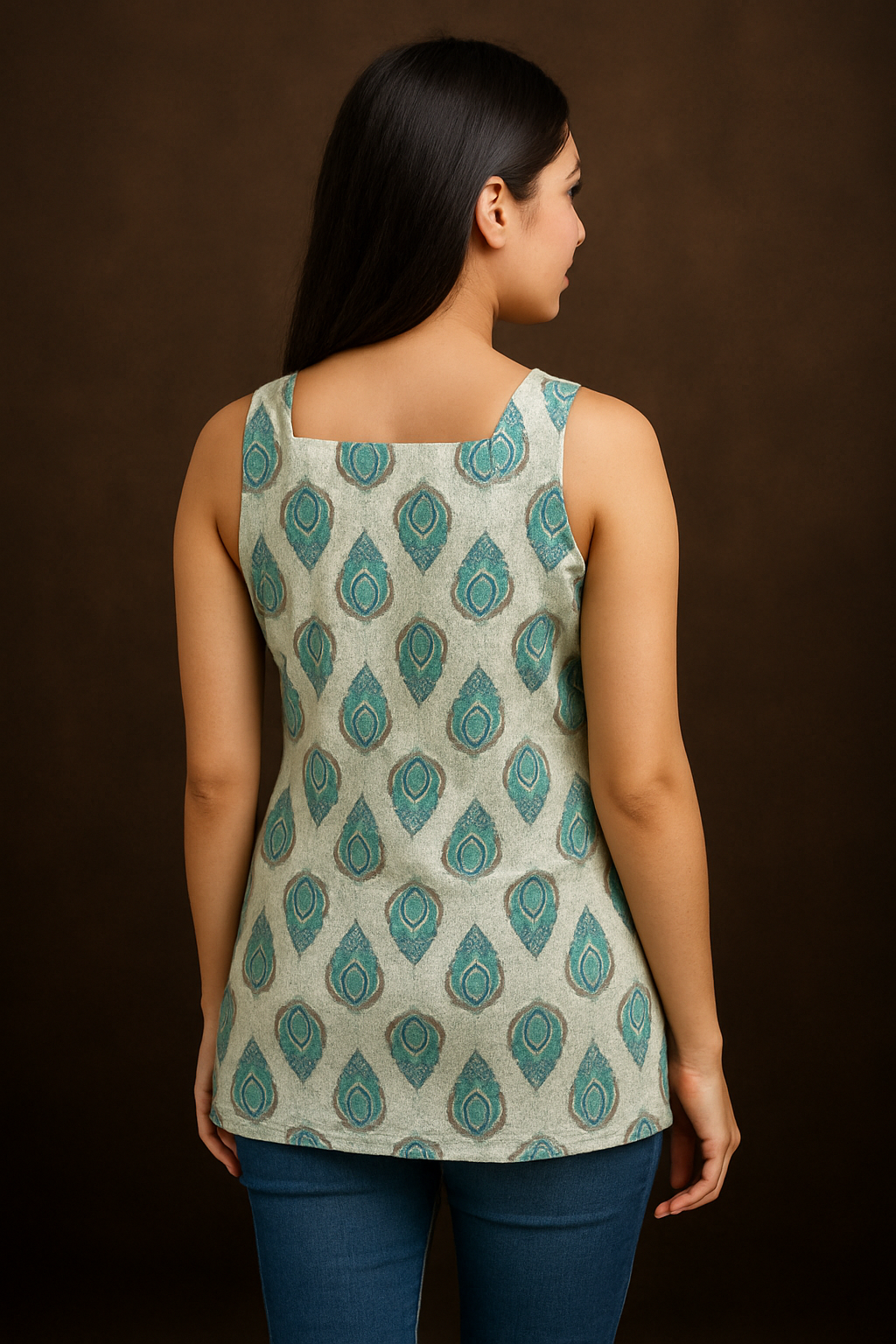 Soft cotton canvas adorned with serene blue paisley motifs — light, graceful, and effortlessly refined. A timeless piece for easy, elegant days.
